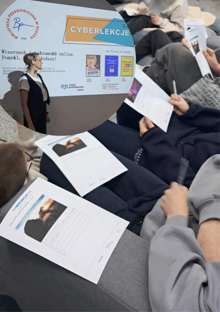 W klasach ósmych odbyły się kolejne zajęcia w ramach programu Cyberlekcje 3.0, prowadzone przez Tatianę Jastrzębską. Uczniowie zgłębiali temat „Wizerunek i tożsamość w internecie” — obszar niezwykle istotny dla każdego, kto porusza się w cyfrowym świecie. Podczas zajęć rozmawialiśmy nie tylko o tym, jak świadomie budować swój wizerunek online i chronić dane osobowe, ale również o odpowiedzialności prawnej za niewłaściwe zachowania w sieci. Uczniowie poznali konkretne przykłady konsekwencji prawnych hejtu, udostępniania czyichś materiałów bez zgody czy podszywania się pod inne osoby.