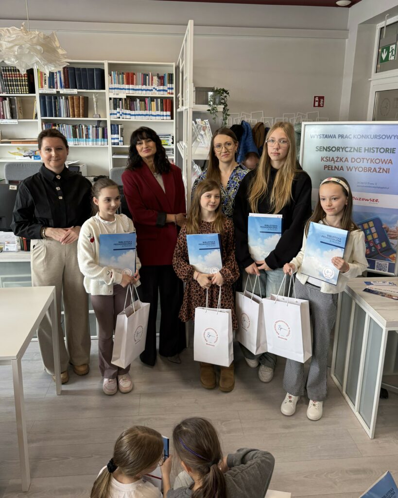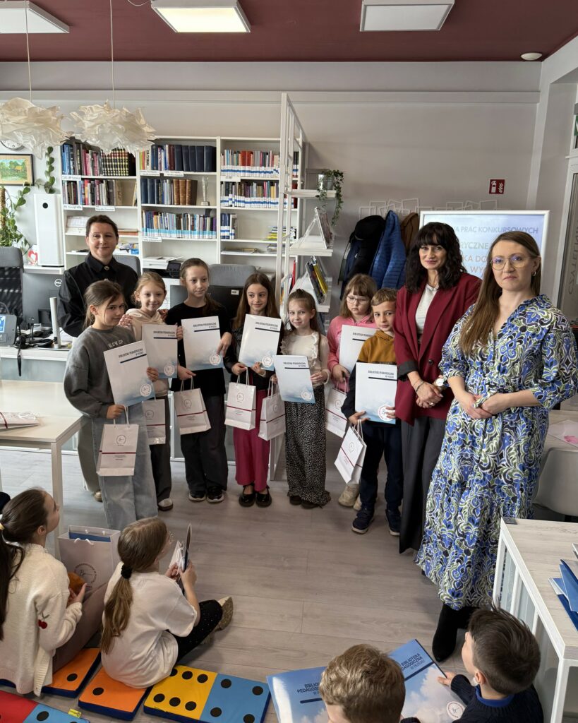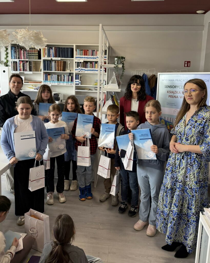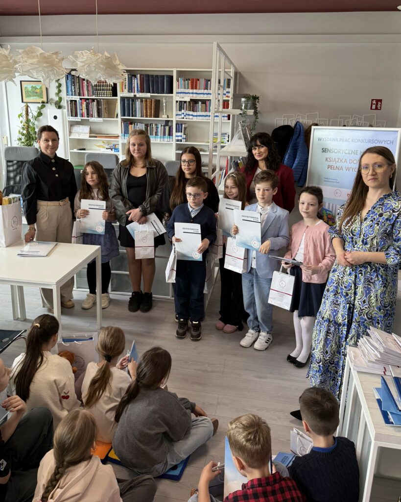 Podczas uroczystego spotkania, w obecności uczestników, ich rodzin, nauczycieli i bibliotekarzy, ogłoszono zwycięzców w dwóch kategoriach wiekowych. Pani Dyrektor Agnieszka Olczyk, przedstawicielka jury Marta Jaroszewska oraz koordynatorka konkursu Joanna Kamińska‑Wójcik uhonorowały wszystkich twórców, podkreślając ich talent i zaangażowanie. Goście mogli również obejrzeć wystawę wszystkich zgłoszonych prac – pełnych pomysłowości, różnorodnych faktur i sensorycznych rozwiązań.