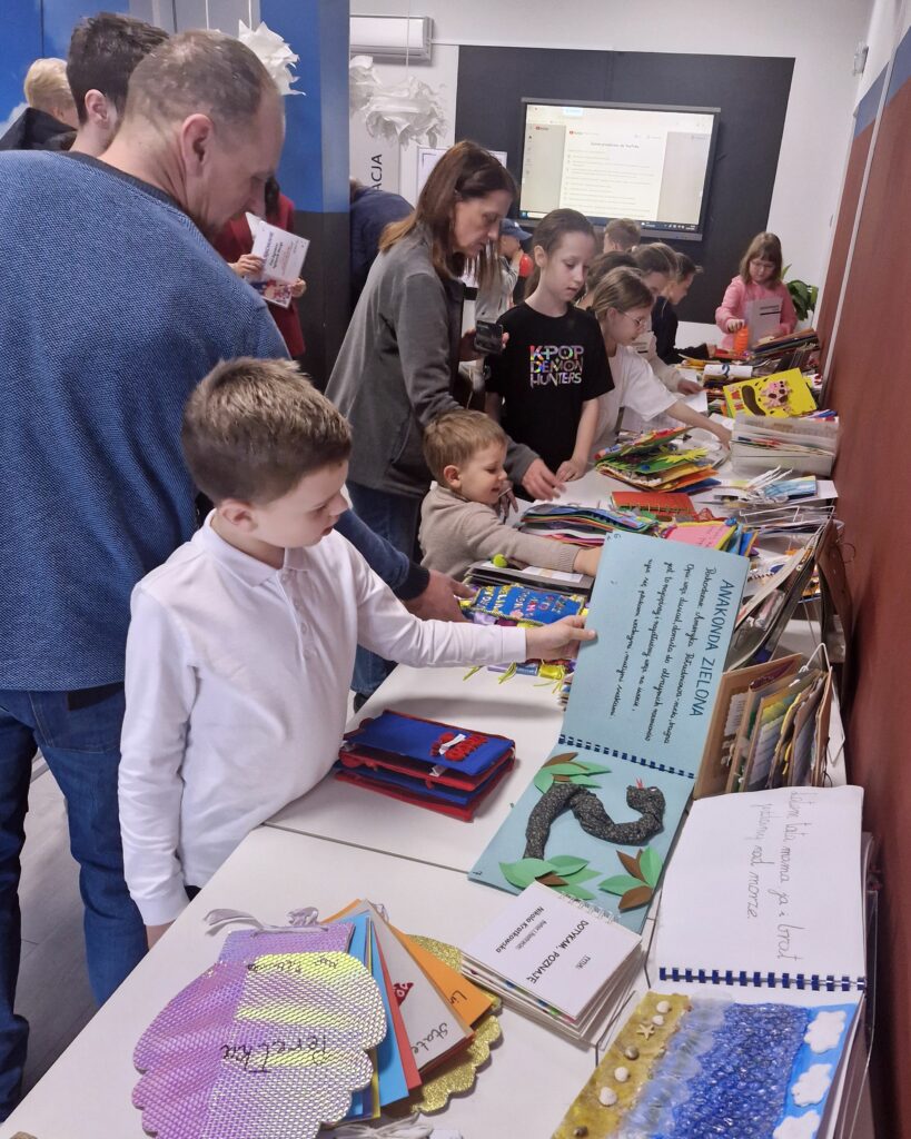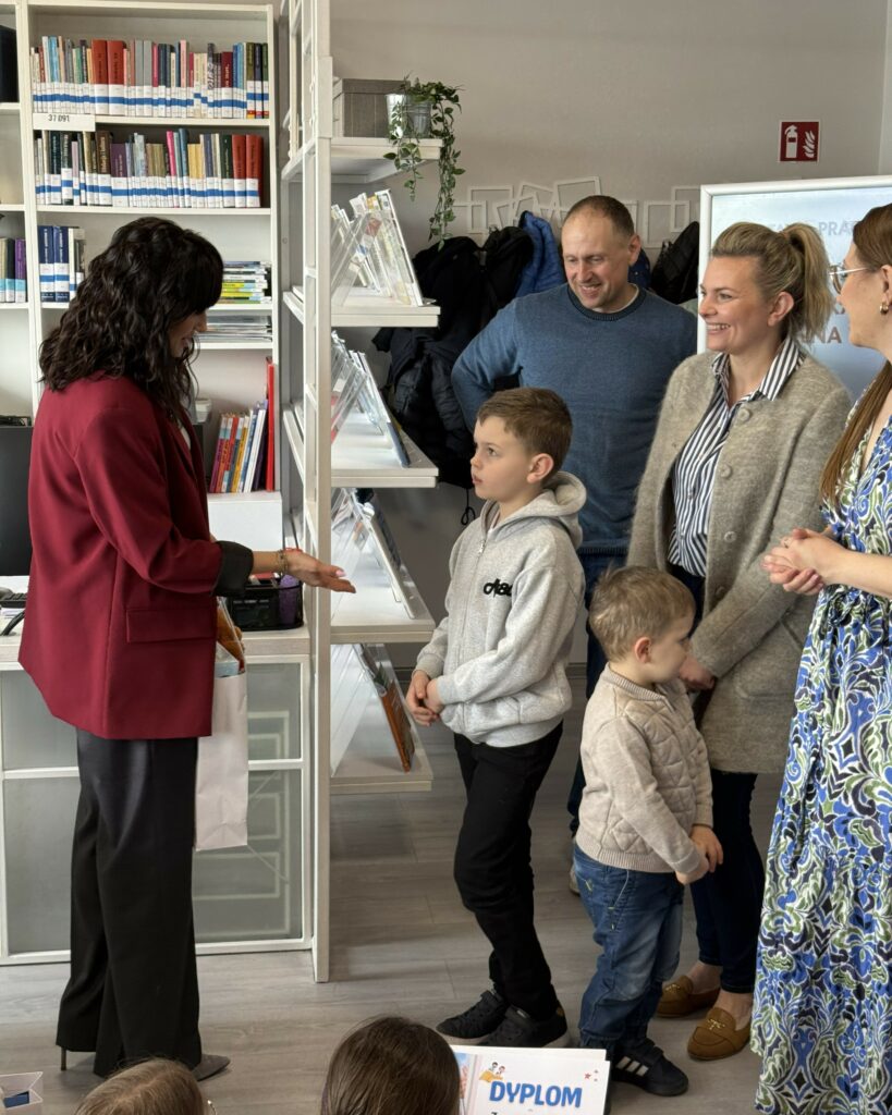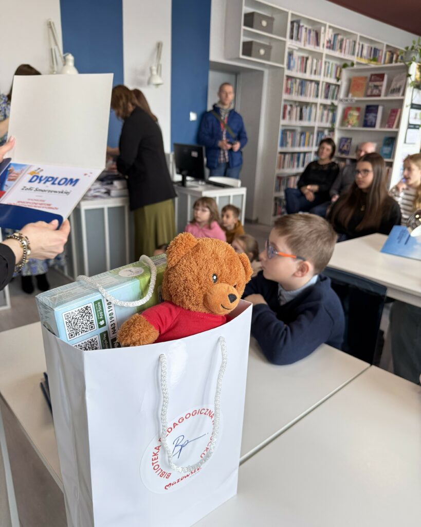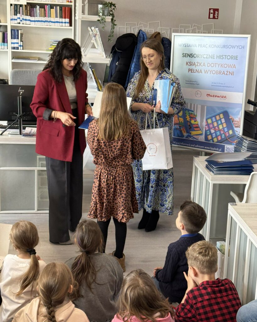 Podczas uroczystego spotkania, w obecności uczestników, ich rodzin, nauczycieli i bibliotekarzy, ogłoszono zwycięzców w dwóch kategoriach wiekowych. Pani Dyrektor Agnieszka Olczyk, przedstawicielka jury Marta Jaroszewska oraz koordynatorka konkursu Joanna Kamińska‑Wójcik uhonorowały wszystkich twórców, podkreślając ich talent i zaangażowanie. Goście mogli również obejrzeć wystawę wszystkich zgłoszonych prac – pełnych pomysłowości, różnorodnych faktur i sensorycznych rozwiązań.