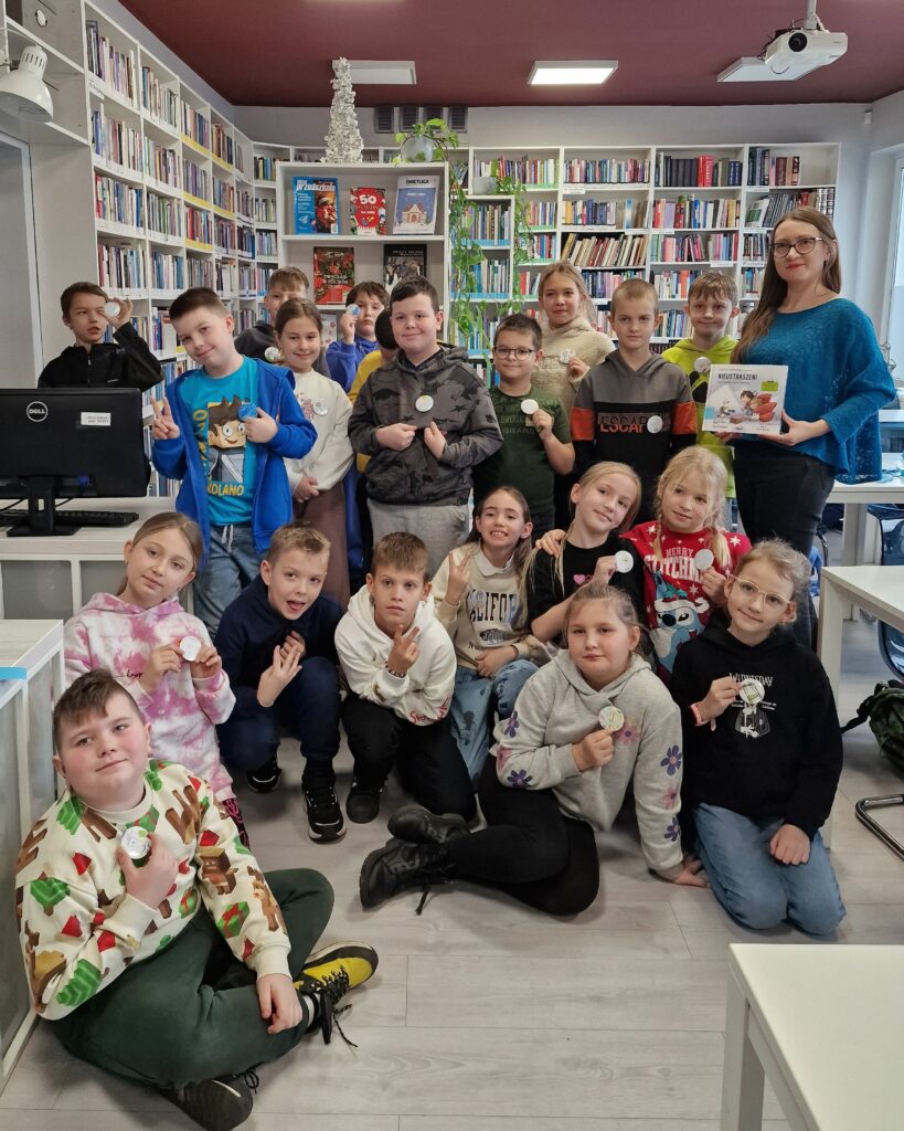 Po lekturze fragmentów książki „Nieustraszeni i poszukiwanie skarbu” z serii Szkoła emocji zastanawialiśmy się, czym jest prawdziwy skarb i jakie mocne strony kryją się w każdym z nas. Wspólnie stworzyliśmy historię inspirowaną kształtami powyrywanymi z kartek, a na zakończenie dzieci przygotowały przypinki z własnymi mocnymi cechami. Dodatkową atrakcją było zwiedzanie tajnych korytarzy naszej biblioteki i odkrywanie jej bogatego księgozbioru.