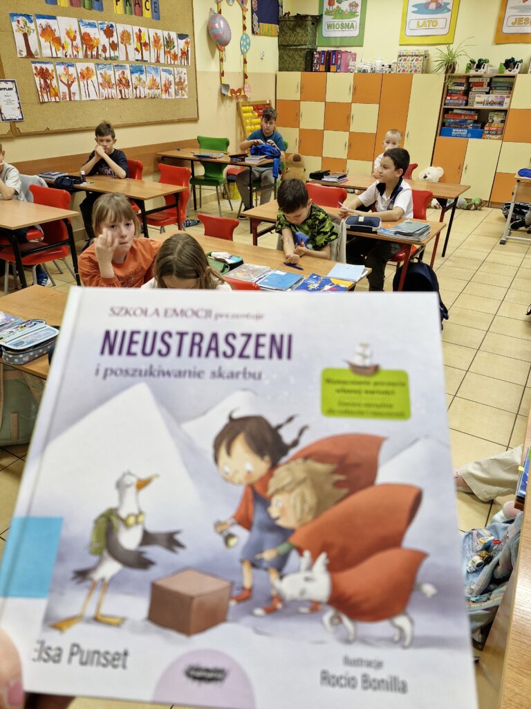 Joanna Kamińska-Wójcik przeprowadziła zajęcia w ramach projektu „Na ratunek emocjom” Wydawnictwa Mamania. Uczniowie ze Szkoły Podstawowej nr 18 w Płocku usłyszeli fragment książki „Nieustraszeni i poszukiwanie skarbu” serii Szkoła emocji. Lektura stała się punktem wyjścia do rozmowy o pozytywnym myśleniu, odkrywaniu własnych wartości i budowaniu poczucia własnej wyjątkowości.