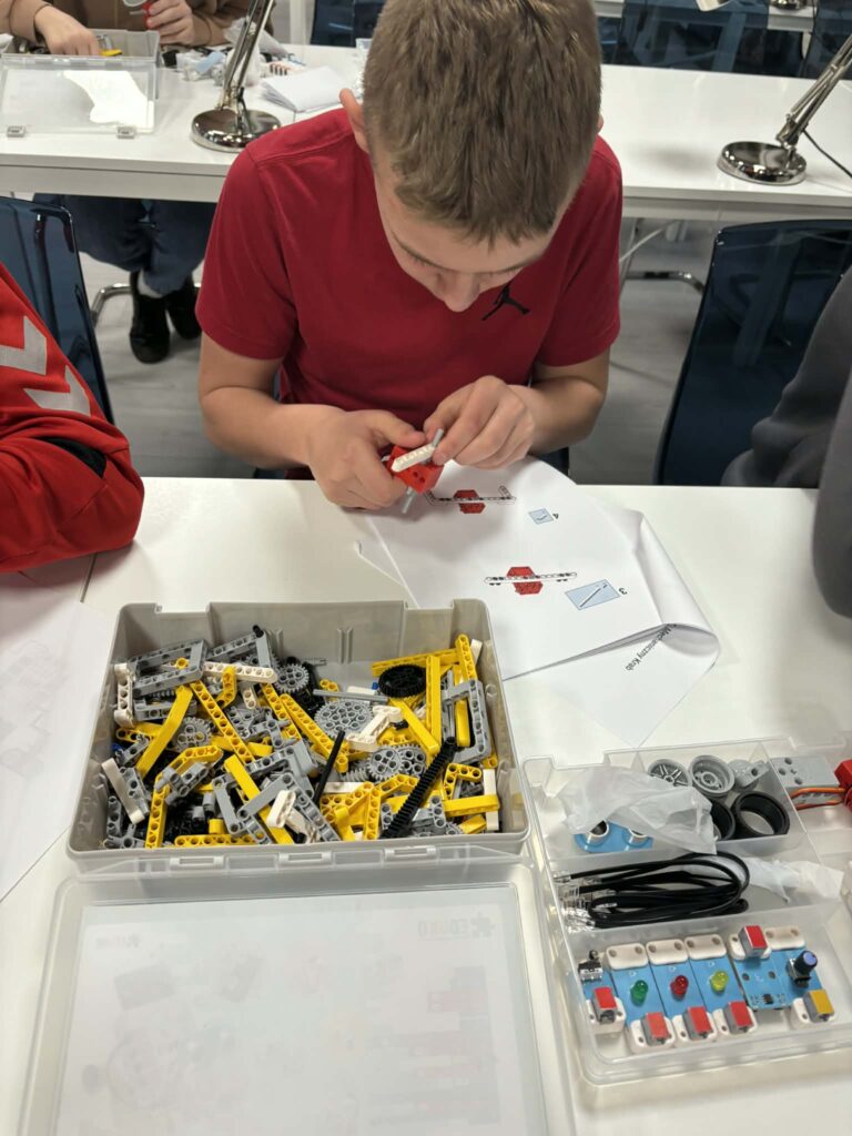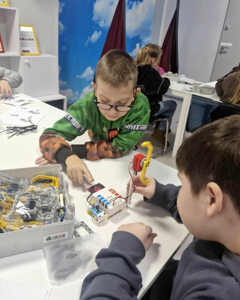 Podczas spotkania Magdalena Kardynał poprowadziła kreatywne zajęcia, które przeniosły uczestników w niezwykły podwodny świat książek. W ramach warsztatów uczniowie otrzymali zadanie zbudowania robota z klocków konstrukcyjnych. Dzięki zastosowaniu płytki microbit ich konstrukcje ożyły i zaczęły się poruszać, co wywołało ogromną radość i satysfakcję.