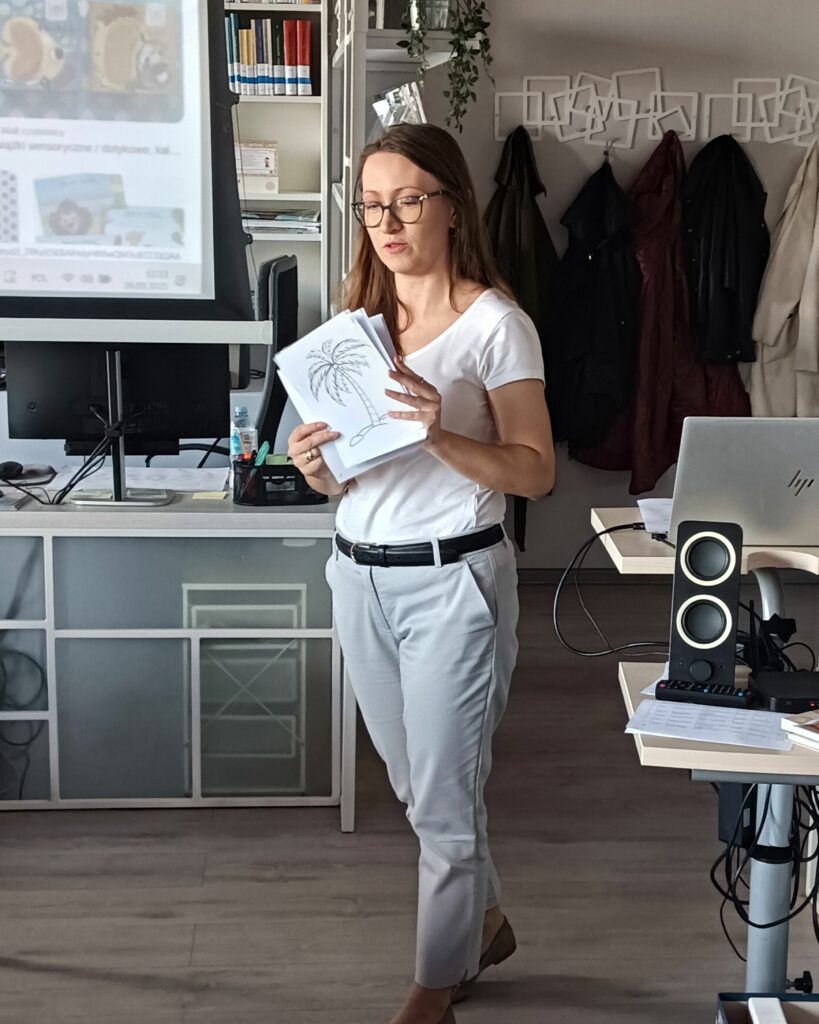 Anna Krusiewicz – nauczycielka konsultantka w zakresie języka polskiego, historii i wos Mazowieckiego Samorządowego Centrum Doskonalenia Nauczycieli Wydział w Płocku przedstawiła problematykę regionalną na lekcjach oraz w projektach edukacyjnych. Następnie Magdalena Kardynał, nauczycielka bibliotekarka Biblioteki Pedagogicznej w Płocku, zaprezentowała propozycję współpracy dla nauczycieli bibliotekarzy z Biblioteką Pedagogiczną w Płocku w ramach akcji pt. Zostań ambasadorem Książki – pisz, polecaj, inspiruj. Na koniec Joanna Kamińska-Wójcik, nauczycielka bibliotekarka z Biblioteki Pedagogicznej w Płocku, przeprowadziła warsztaty pt. Książki dotykowe – warsztaty od pomysłu do realizacji i zaprezentowała zasady udziału w konkursie.