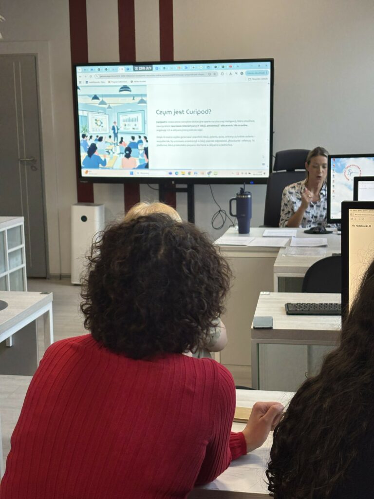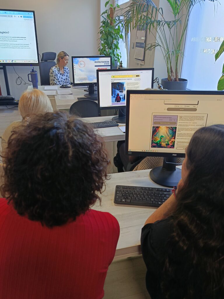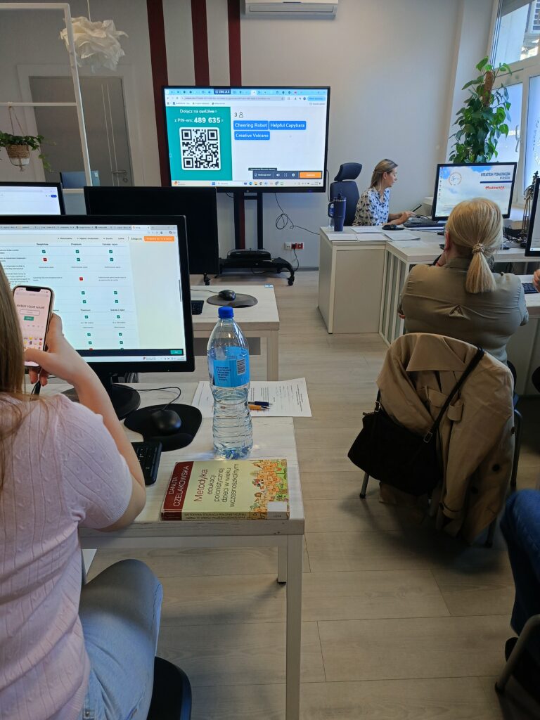 Podczas spotkania pt. „Ucz, baw i angażuj – kreatywne narzędzia online” uczestnicy mieli okazję poznać ciekawe rozwiązania i aplikacje, które pomagają uatrakcyjnić zajęcia oraz aktywnie angażować dzieci w proces uczenia się. Nie zabrakło inspiracji do pracy dydaktycznej, praktycznych przykładów wykorzystania narzędzi cyfrowych oraz wymiany doświadczeń między nauczycielami.
