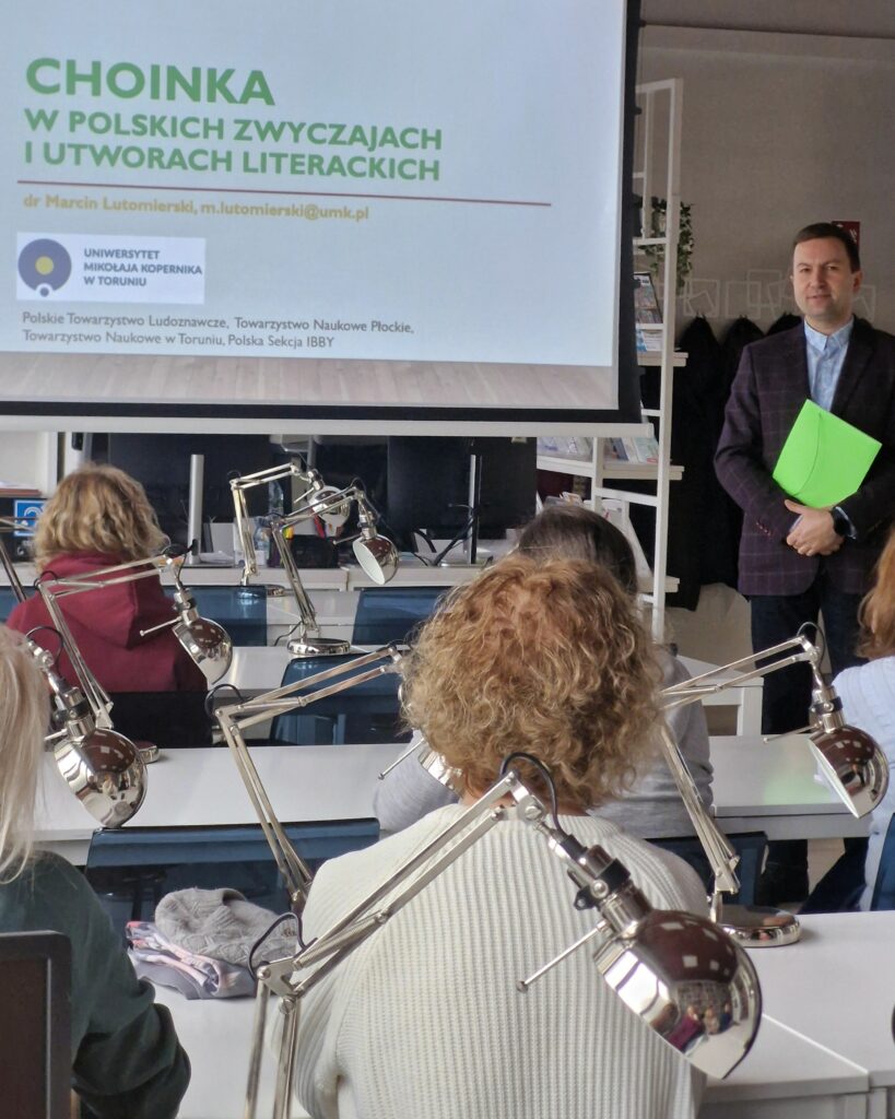 Choinka w polskich zwyczajach i utworach literackich poprowadzi dr Marcin Lutomierski, badacz historii literatury i kultury polskiej, pracownik Wydawnictwa Naukowego Uniwersytetu Mikołaja Kopernika w Toruniu, a także Instytutu Literatury Polskiej UMK w Toruniu oraz Instytutu Kształcenia Podyplomowego Szkoły Wyższej