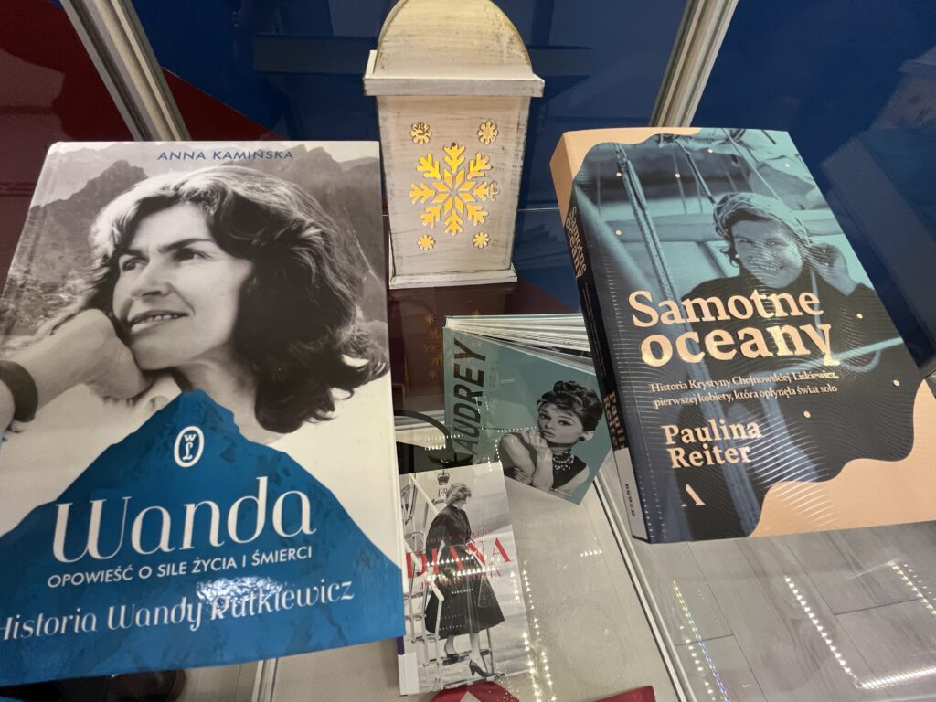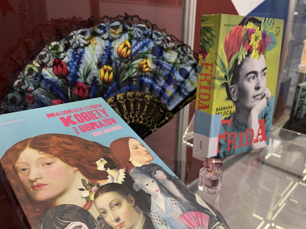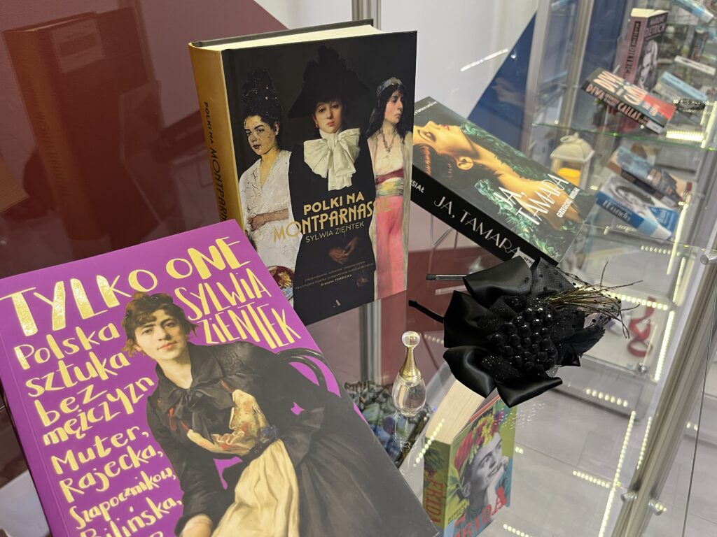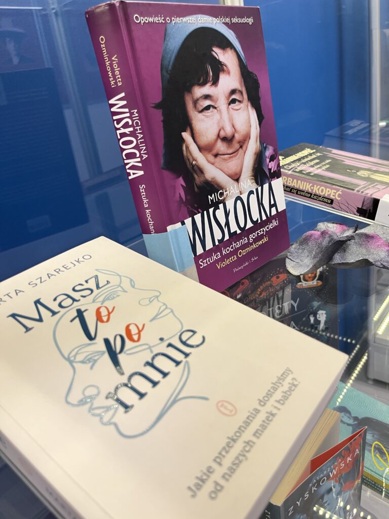 W gablotach wyeksponowano bogaty zestaw publikacji prezentujących różnorodne herstorie – od wielkich biografii po osobiste świadectwa i analizy społecznych przemian.